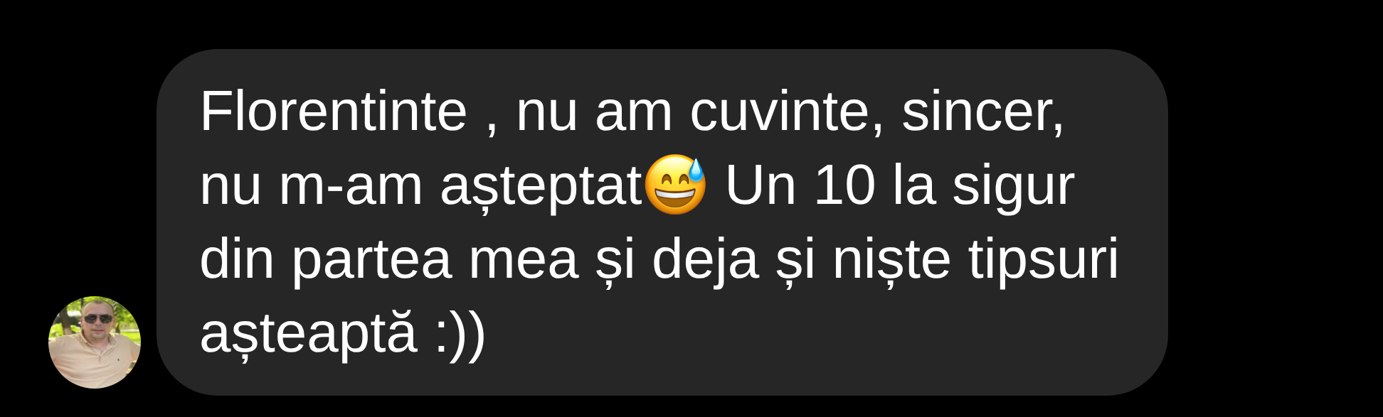 Nu mă crede doar pe cuvânt. Iată ce au de spus clienții mei despre experiența lor cu mine.